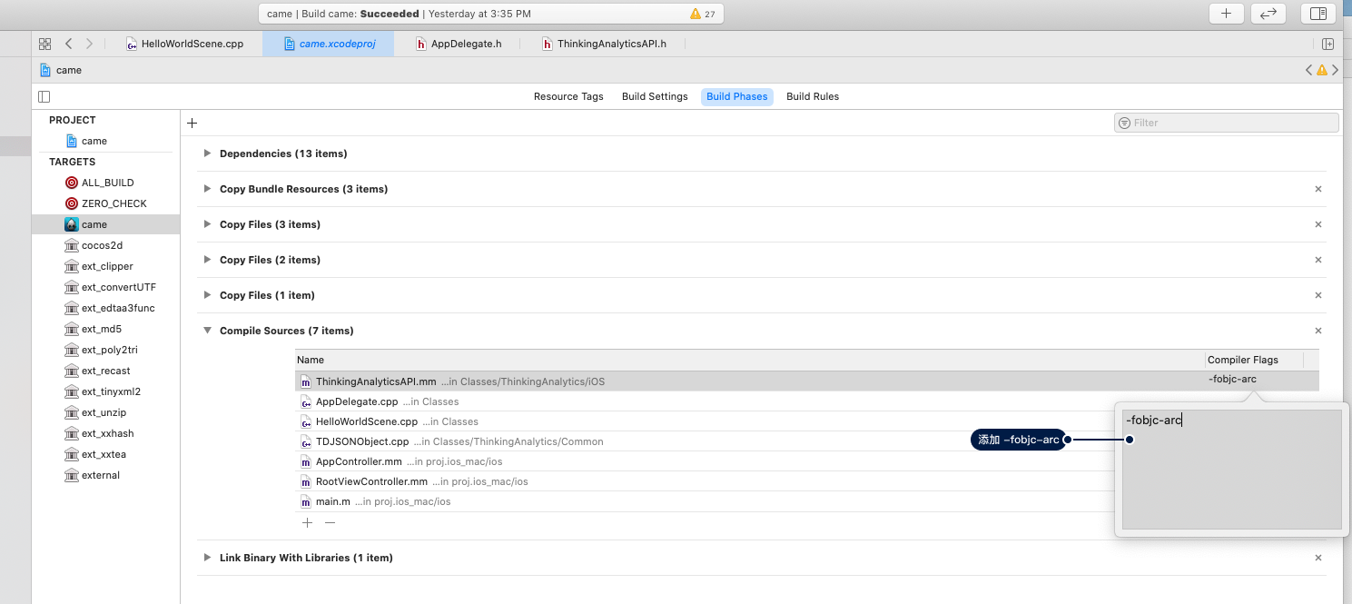 中的ThinkingAnalytics.mm添加-fobjc-arc