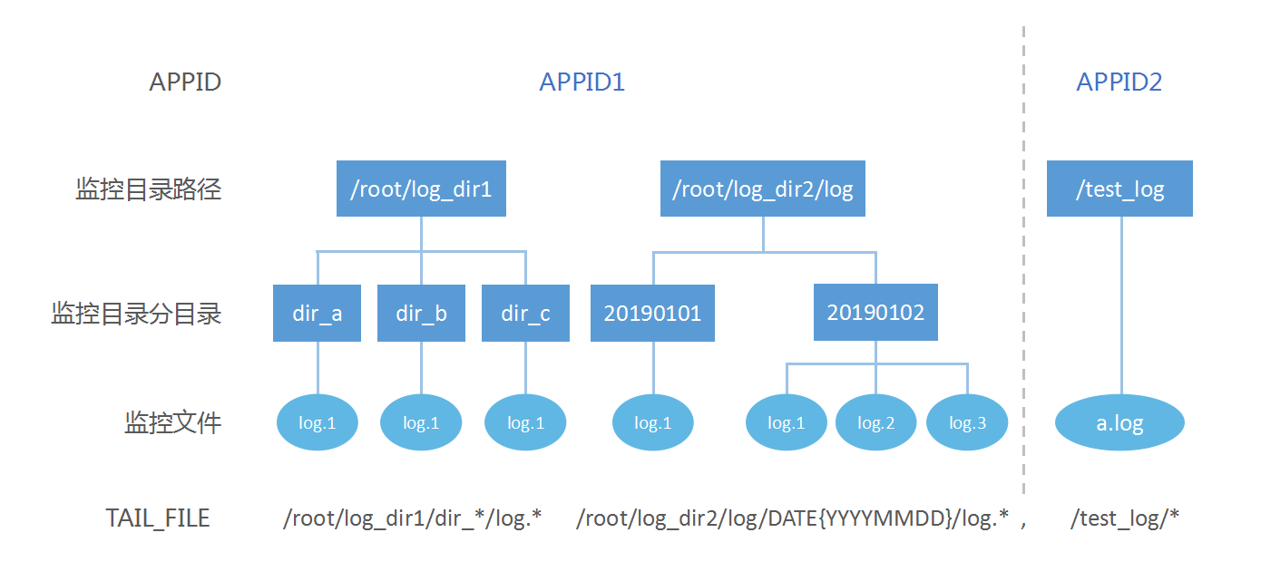 TAIL_FILE 支持对多路径下的多分目录中的多个文件进行监控,下图是