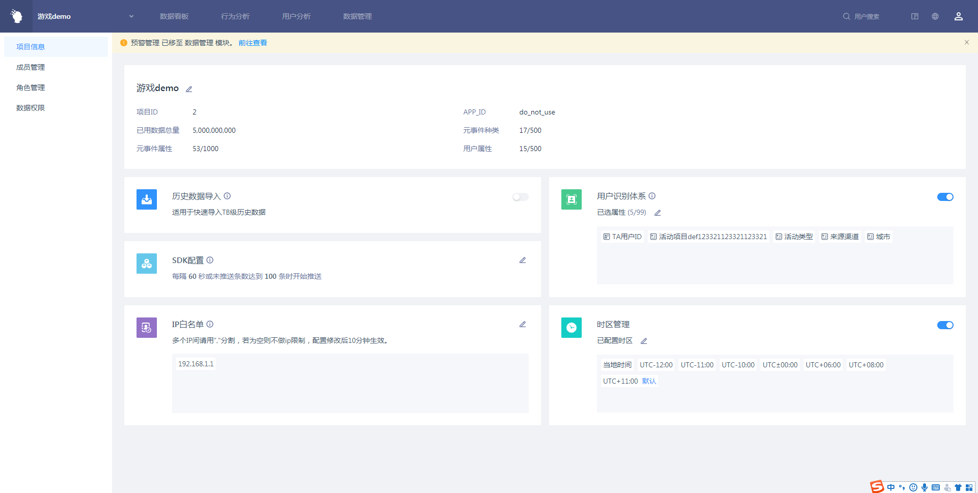 可修改项目名、查看应用 ID 和 APP_ID 及配置各类项目信息