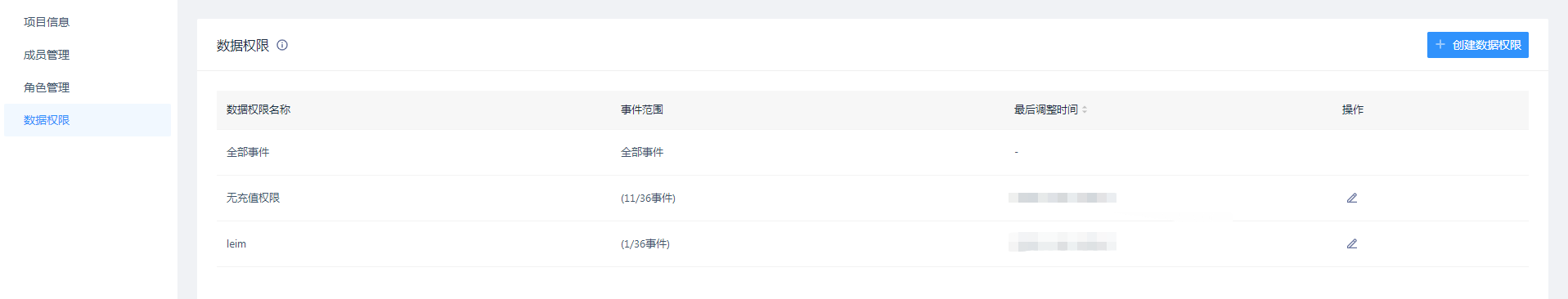 每个项目可按照可访问的事件(原始事件或虚拟事件)打包创建新的数据权限组。