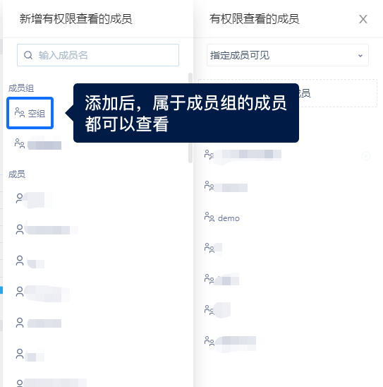 看板共享时可将其共享至一个成员组,共享后,属于成员组的成员都可以看到该看板。
