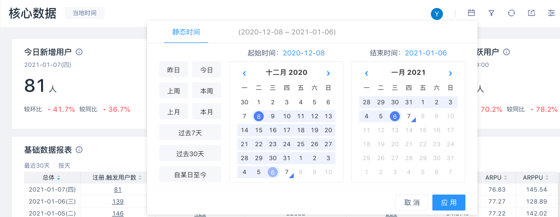 - 计算完成后,将时间切换为和全局时间框一样并展示各个报表结果