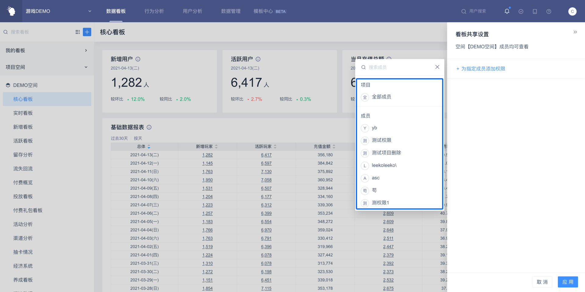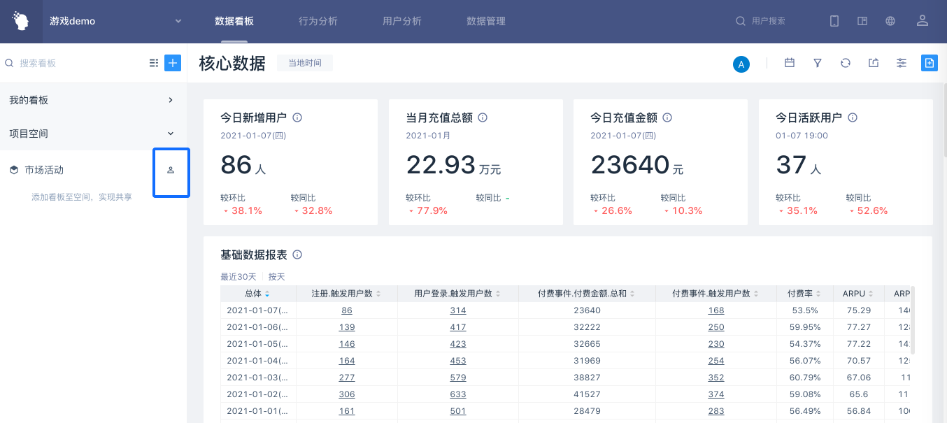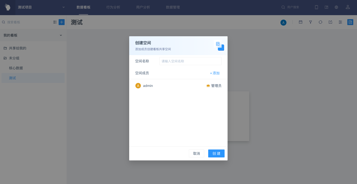 通过看板与空间,可以非常方便地将自己创建的报表分享给其他其他用户。