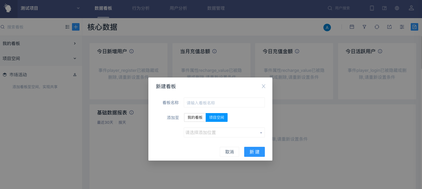 注意:该功能按照导入的看板参数配置生成新看板,导入项目的事件(属性)与导出项目的事件(属性)匹配时,看板才能正常使用。