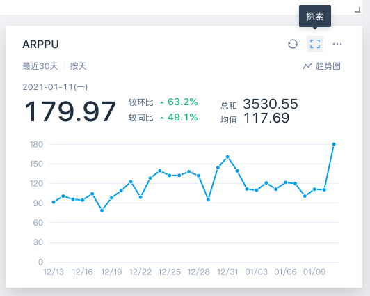 点击报表右上角的探索模块按钮,可以对该报表进行进一步的下钻探索,探索模块的使用请参考探索模块一节