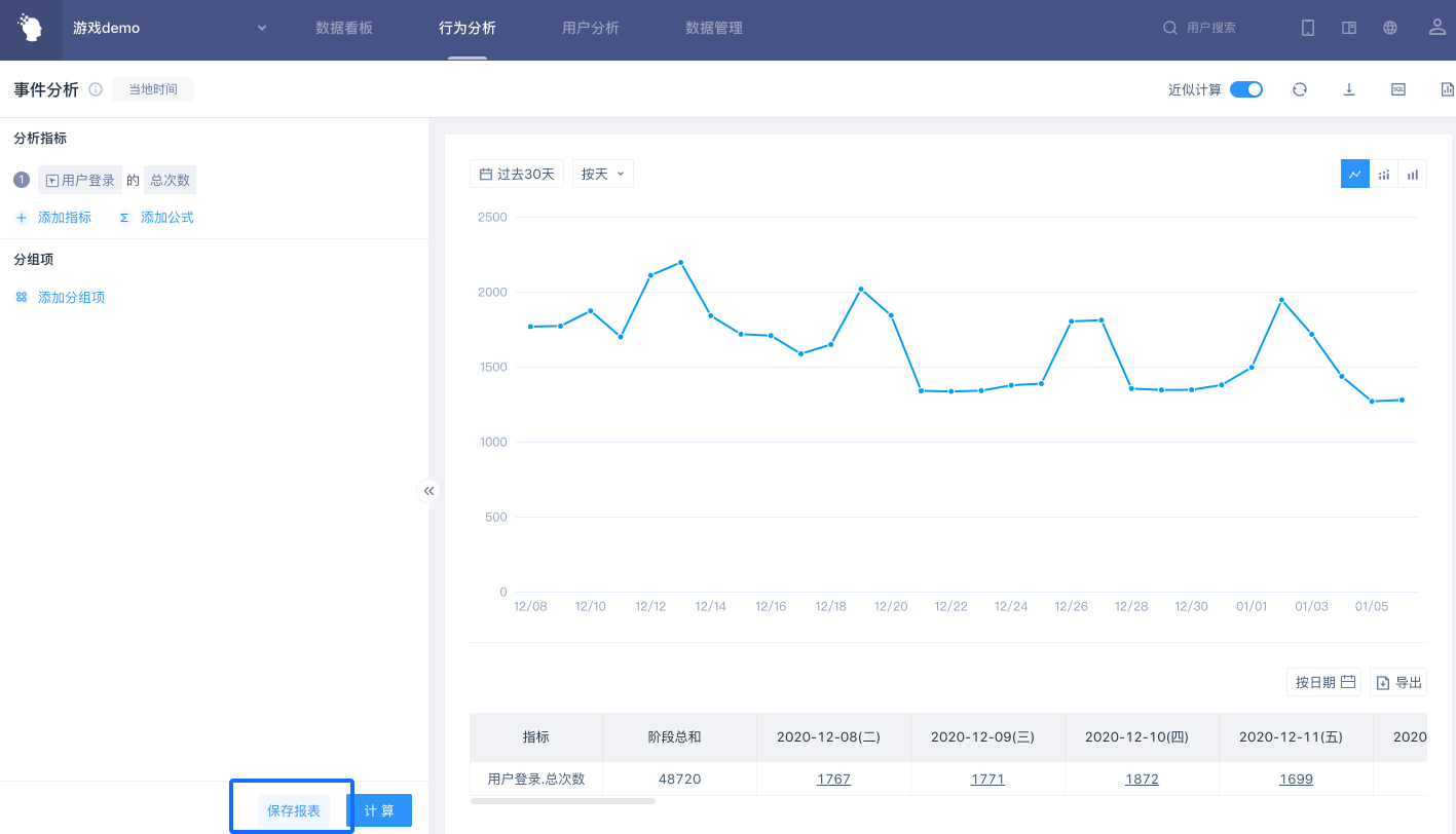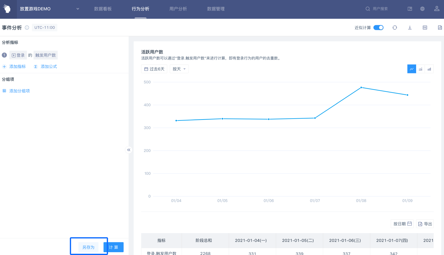 如果对查询效率有需求,可以选择“近似计算”选项。开启后,对触发用户数、人均次数、人均值、去重数等数据,都将采取近似算法。可以极大减少性能开销并减少计算时间。