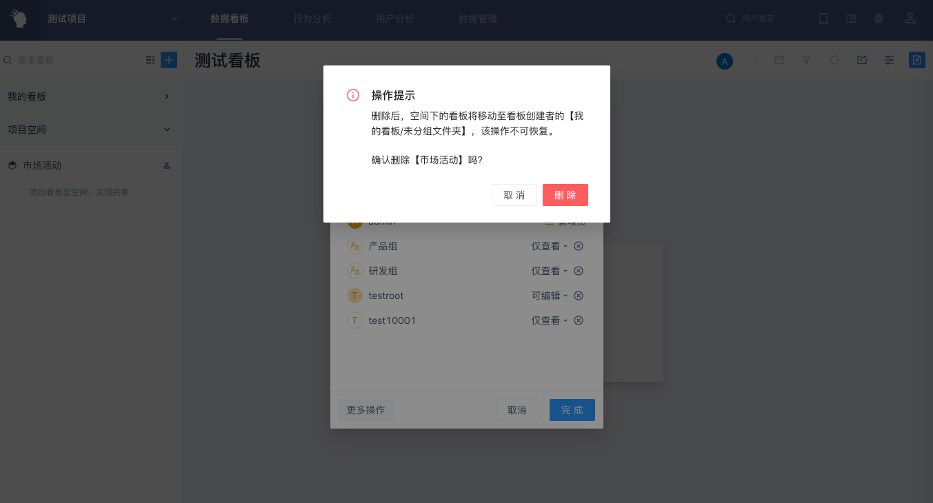 - 移交空间:选择项目成员作为新的管理员,移交后,原管理员将变为空间成员。移交对象需为分析师及以上角色