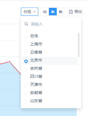 用户可以选择分组详情中的一项(单选)进行选择,选择后,将展示这个选项下的数值趋势图或百分比趋势图。