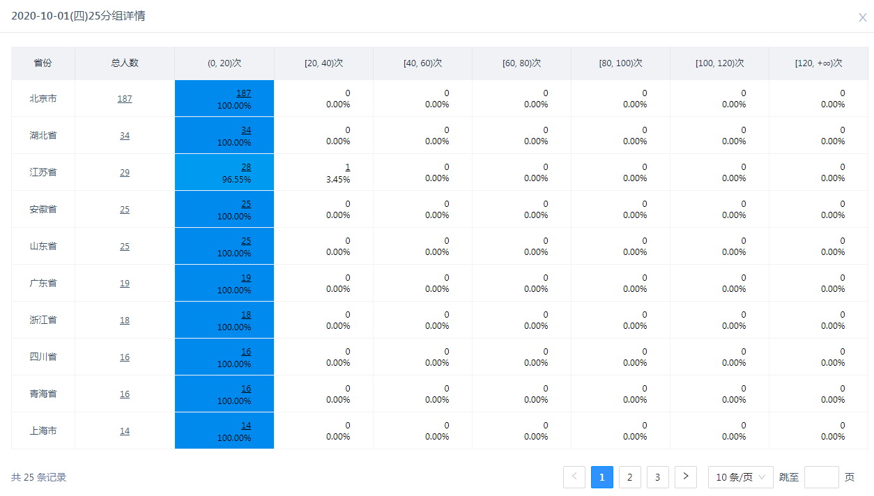 如按省份查看,各省份一周内,每天玩家活跃小时数情况