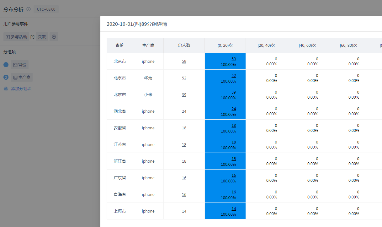 如果按分组查看(事件属性、用户属性或用户分群),那么在具体的分组值中记录这次行为。