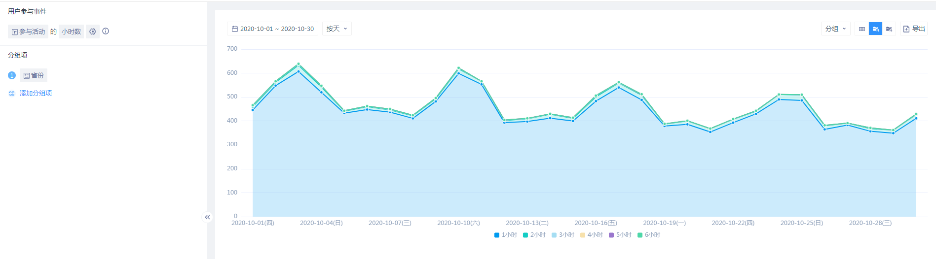 初始按总体分析,如分析一周内,每天玩家活跃小时数情况