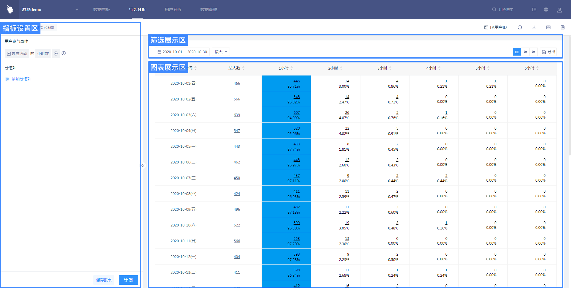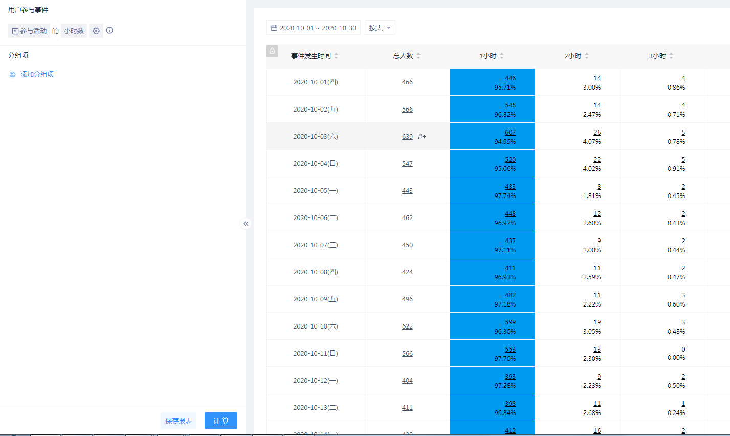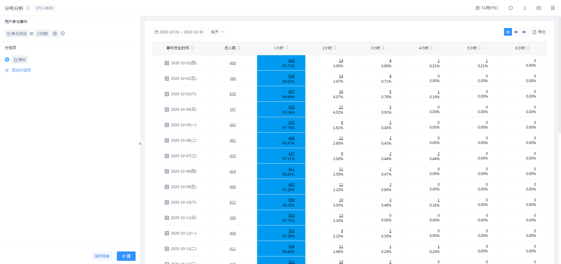 在按分析粒度的细分时间内,当用户参与分析对象时,即计入数据