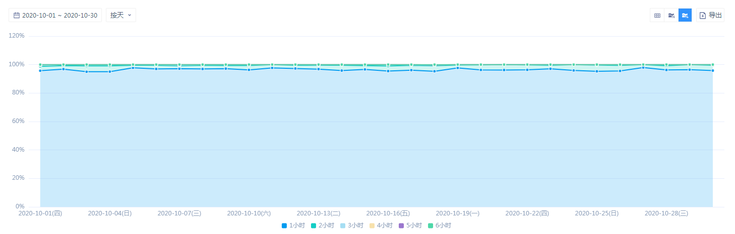 图形显示每日总和始终为 100%的百分比趋势图,可以由此分析各区间的占比变化趋势。