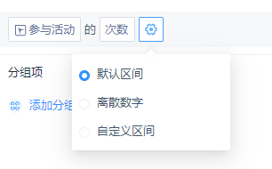 数值型数据可按照区间进行汇总,汇总方法同事件分析。有默认区间、离散数字、自定义区间三种选项,不再赘述。