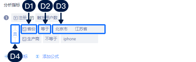 D4【条件逻辑】在筛选条件大于等于两项时出现,默认为“且”,可点击切换为“或”,以适应不同应用场景。