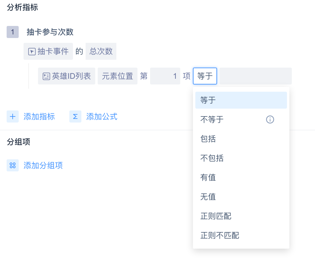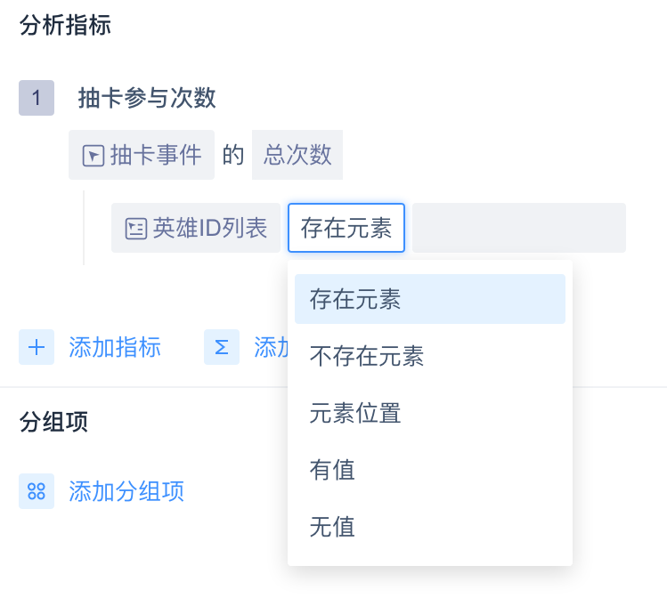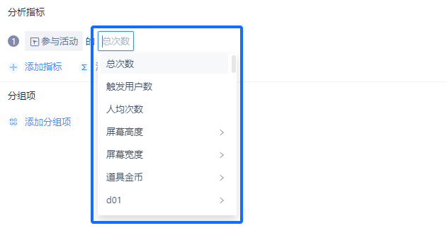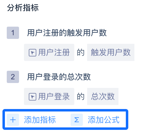 分析指标即 「事件」 + 「属性」 + 「计算方法」 或直接 「事件」 + 「计算方法」: