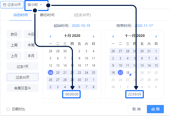 当选择为按分钟或按小时进行检索时,可以精细到小时对数据进行筛选