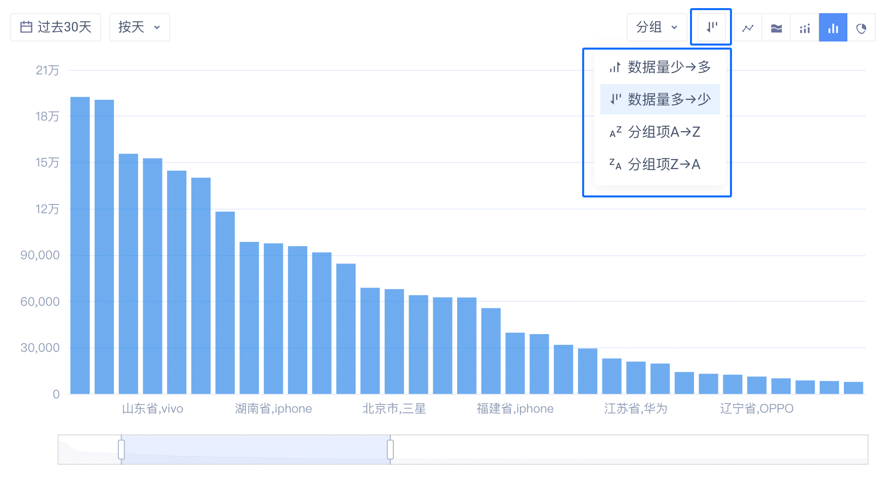 分组数量过多时,图表底部展示缩放滑动条,可调整查看范围
