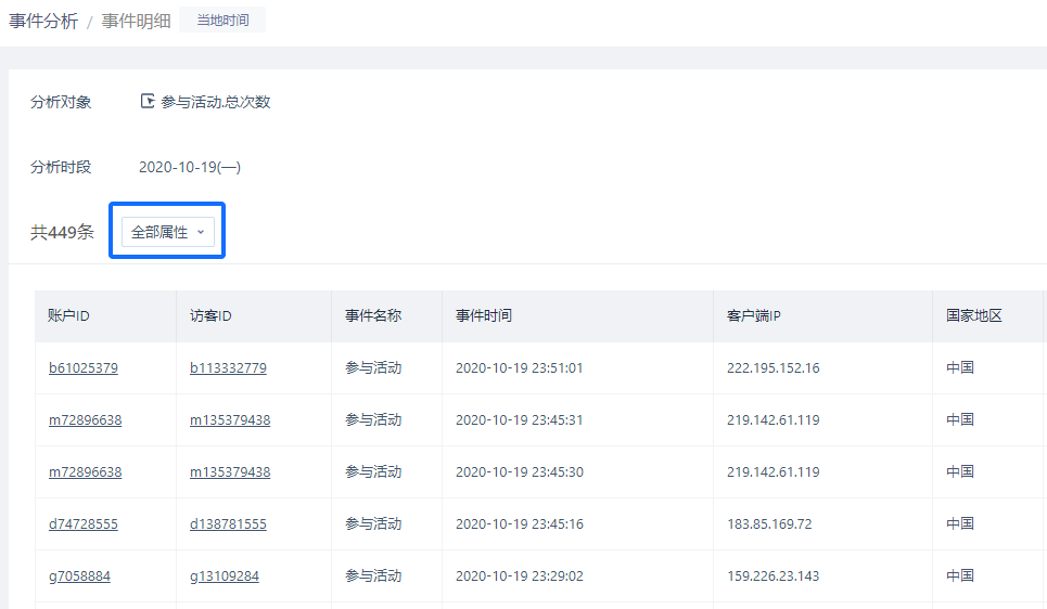 可以对事件包含的事件属性进行筛选,选择展示和下载时需要的属性