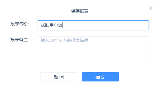 保存时,需要输入【报表名称】、【报表介绍】、并可将报表快捷保存入某个已有【数据看板】,以方便日常查看。