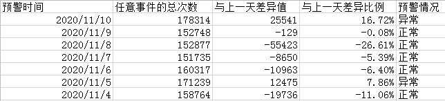 可以选择某一事件的某一各分析角度作为预警监控的分析对象