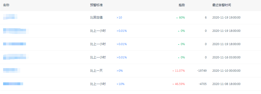 可以查看预警任务的详情,并监控每个预警任务的走势变化情况