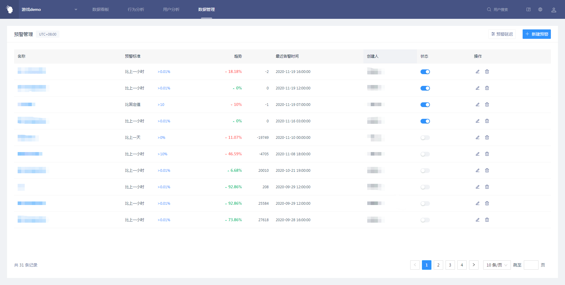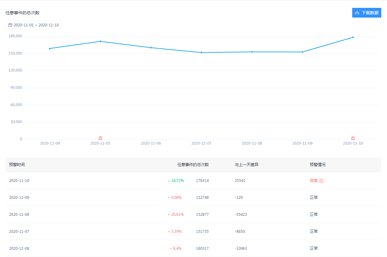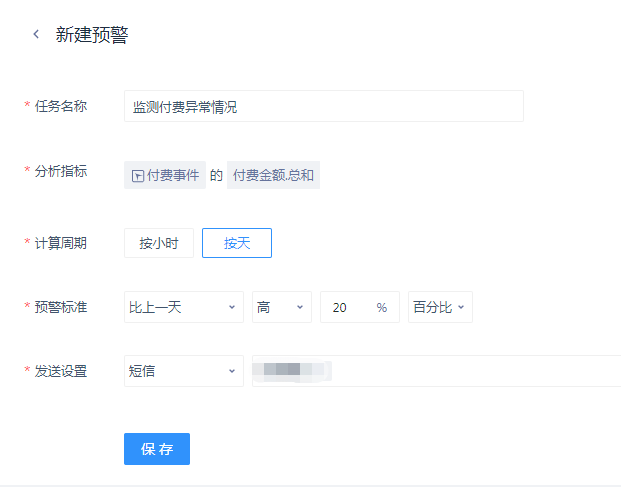 赋予项目管理员针对重点数据的预警监控能力。定时轮询实时数据,对于关键指标超标,可第一时间进行短信或邮件预警。以便发现问题,缩短响应时间,提升对于产品的把控度。
