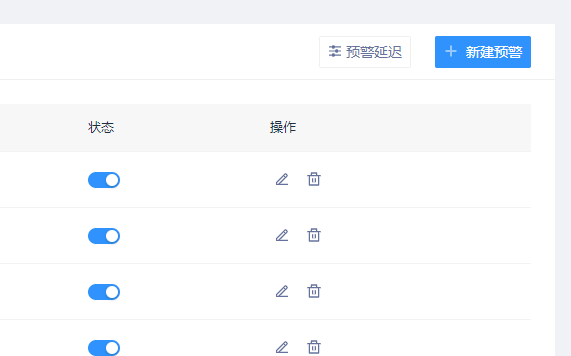 - 第四列为预警情况。正常或异常时,异常时展示对应图标
