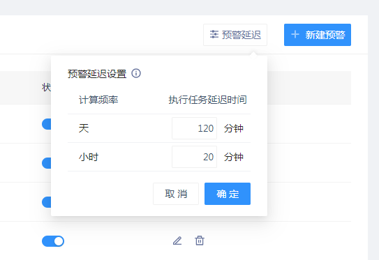 默认为天级 120 分钟,小时级 20 分钟,输入框限制为 1~999 的整数