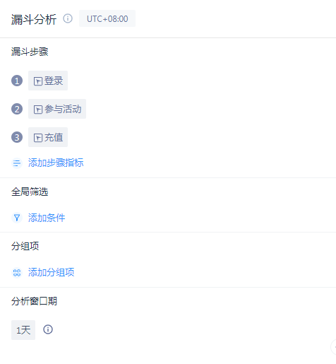 漏斗分析是一种分析用户在行为流中指定步骤转化情况的分析模型,它可以帮助分析师快速掌握一段时间内产品在各个步骤环节中的转化情况,从而达到查缺补漏,优化转化流程的目的。