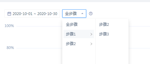 以选中步骤的第一个步骤作为 100%,计算该步骤开始直到选中最后一个步骤的每日转化率