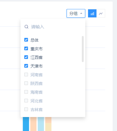 当分组设置的值较多时,默认选中最多的 4 组,最多可选中 4 组
