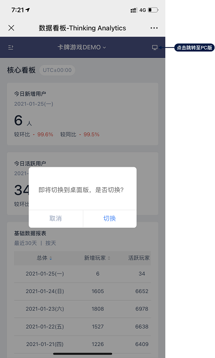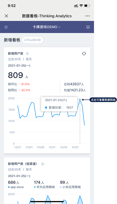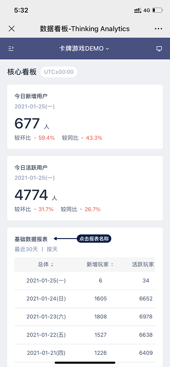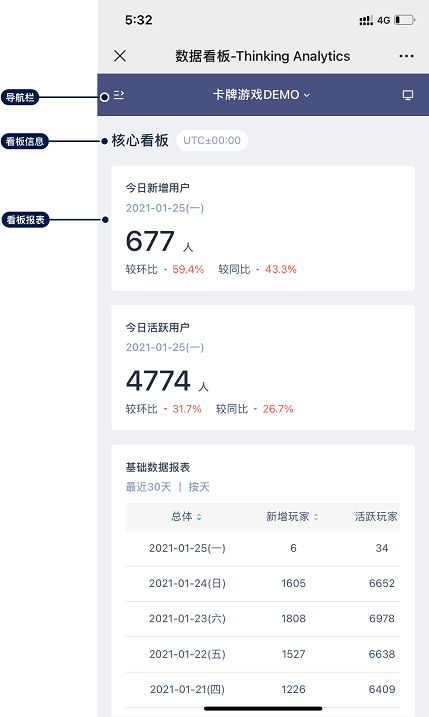 自 3.1 版本起,TA 用户通过手机访问 TA,可在手机端查看数据看板内容。