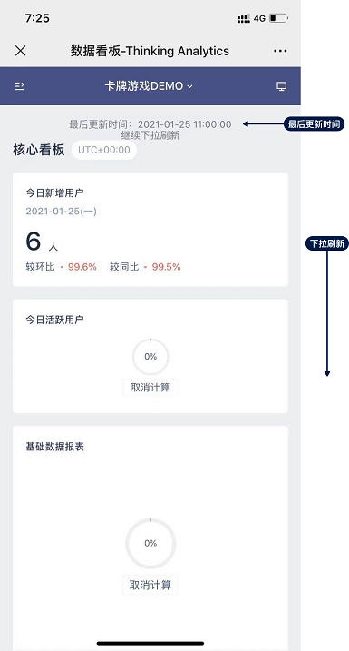 刷新看板:下拉可查看看板的最后更新时间,继续下拉可刷新看板