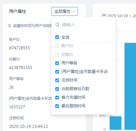 通过下拉框,可筛选需要展示的用户属性,筛选后,展示内容将进行变更,并作为个人配置进行保存。