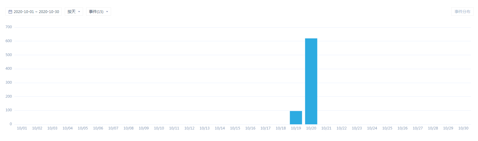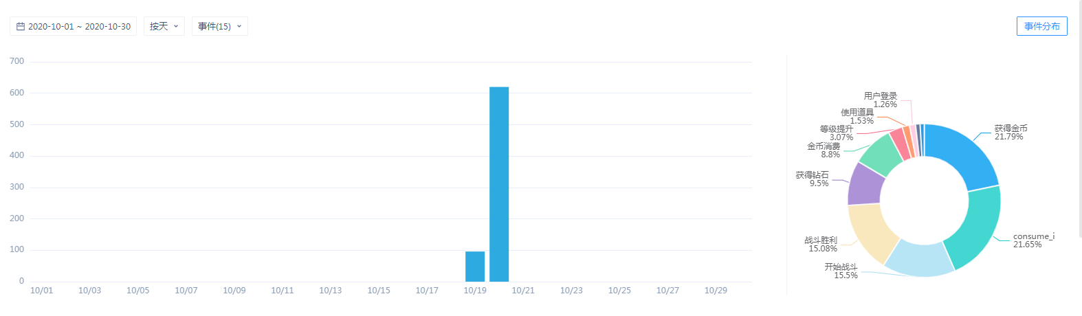 默认可查看近 30 天的每日行为事件数趋势图,并可切换至整体行为分布图