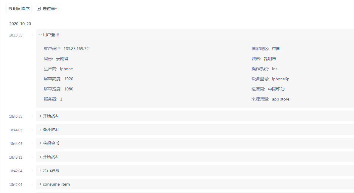 行为序列详情区:可查看当前用户的具体行为序列与事件属性