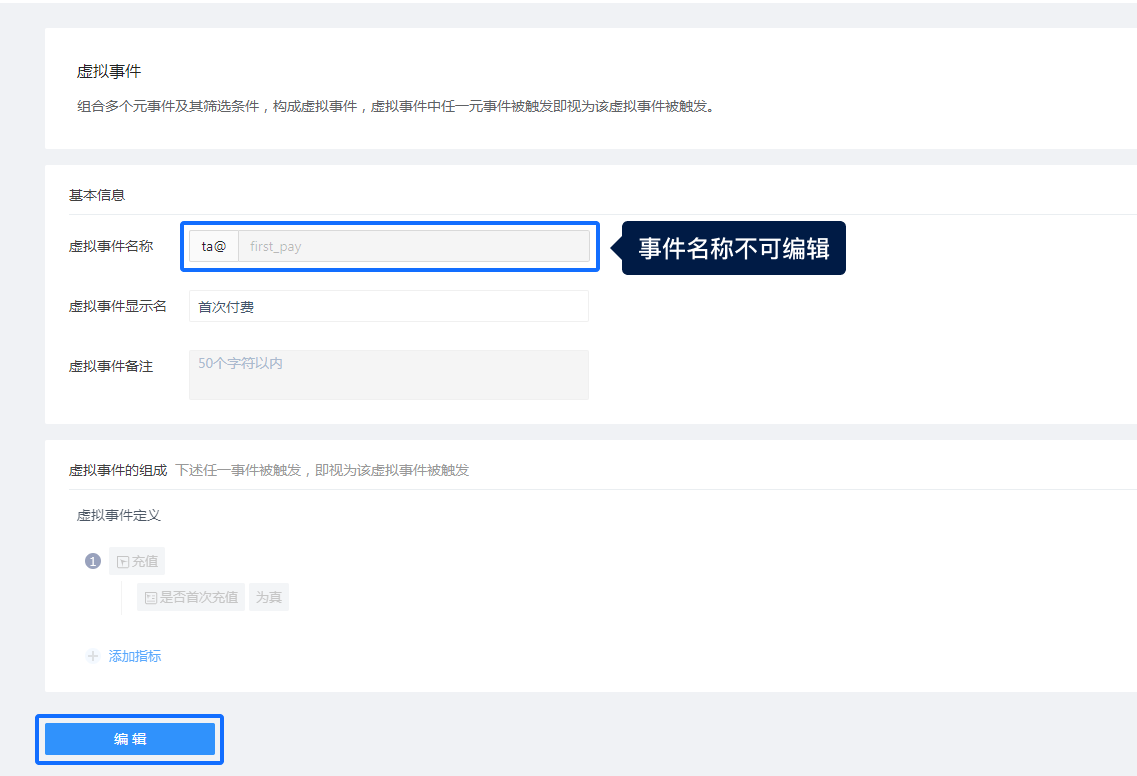 该操作可编辑除了虚拟事件名称以外的所有部分