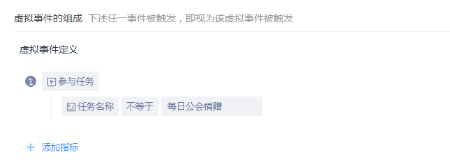 组合多个元事件及其筛选条件构成虚拟事件,虚拟事件中任一元事件被触发即视为该虚拟事件被触发。
